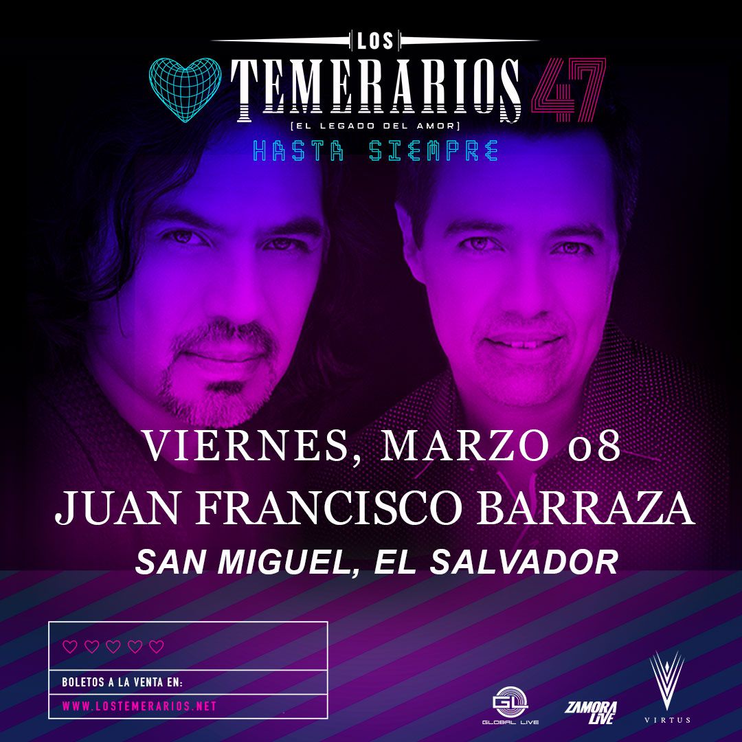 Global Live Promotora de eventos artísticos, dio a conocer la tarde del jueves que el Estadio Barraza, en San Miguel, será el punto de encuentro para los amantes de la música de los Temerarios, sin embargo, aún no se han dado a conocer los precios y localidades, por lo que te invitamos a estar pendientes de sus redes sociales.
