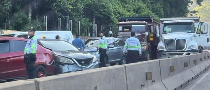 Esta mañana, usuarios en redes sociales compartieron un vídeo de un accidente de tránsito en el que se vieron involucrados al menos cuatro vehículos y un camión.