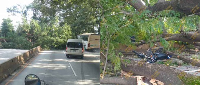 Preliminarmente se informa que los dos posibles lesionados se transportaban en la moto, en redes sociales circulan fotografías del árbol aplastando la moto.