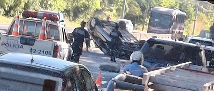 Un fatal percance vial se reportó este miércoles, sobre la carretera Panamericana de acuerdo con reportes ciudadanos, el hecho se registro en el sector de Las Aradas, antes de llegar al distrito de El Congo, Santa Ana, donde un vehículo se encuentra volcado en la vía.