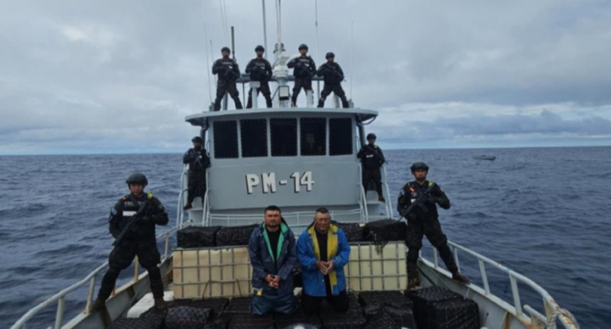 La Marina Nacional interceptó este lunes una embarcación con 1,500 kilos de cocaína, valorados en $37.5 millones transportada por dos tripulantes de nacionalidad ecuatoriana, informó el presidente de la República, Nayib Bukele en la red social X.