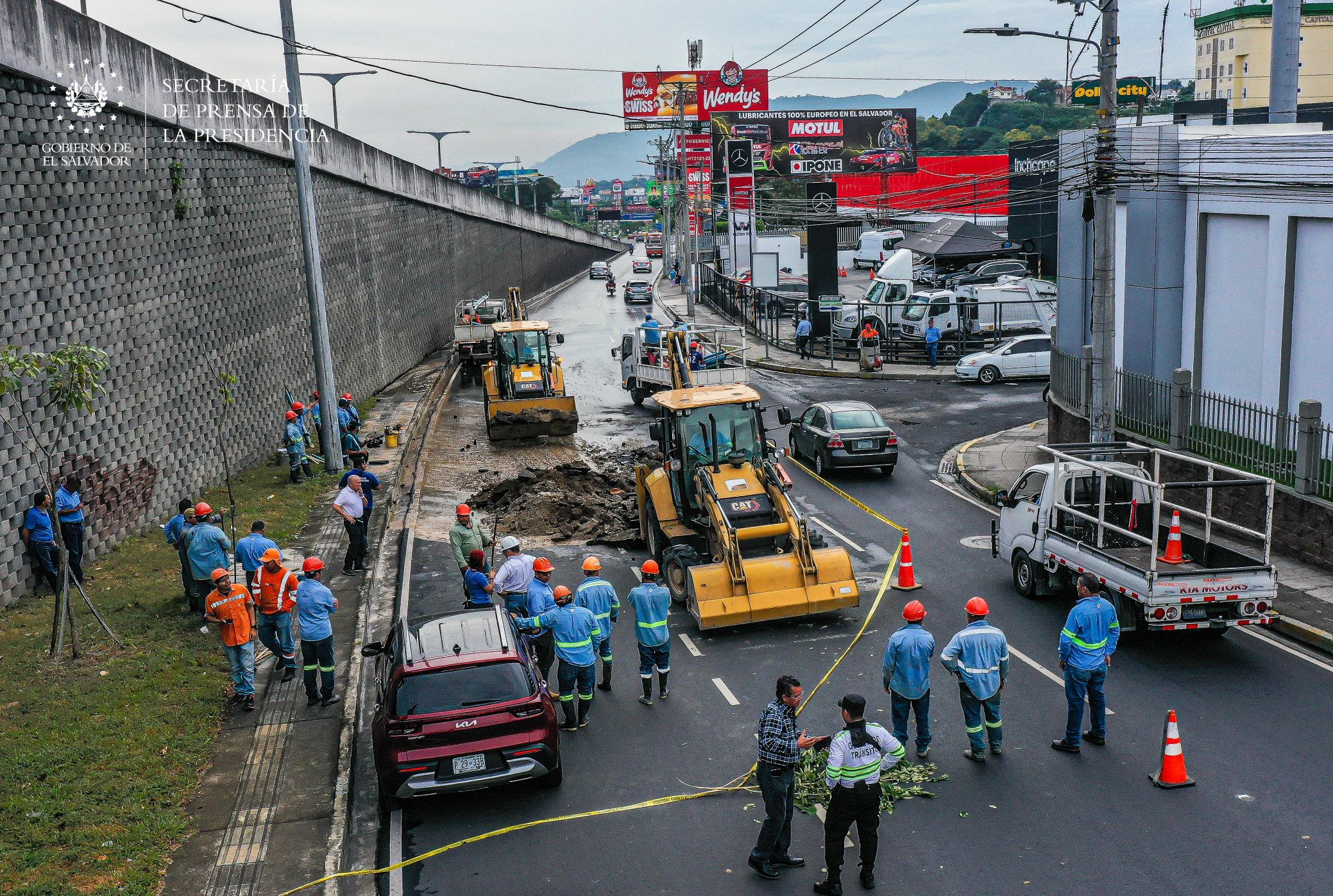 En esta labor, también colabora personal de FOVIAL y gestores de tránsito de Viceministerio de Transporte (VMT). El presidente de ANDA, para revisar las labores que se realizan y garantizar que el tramo sea habilitado a la brevedad posible.