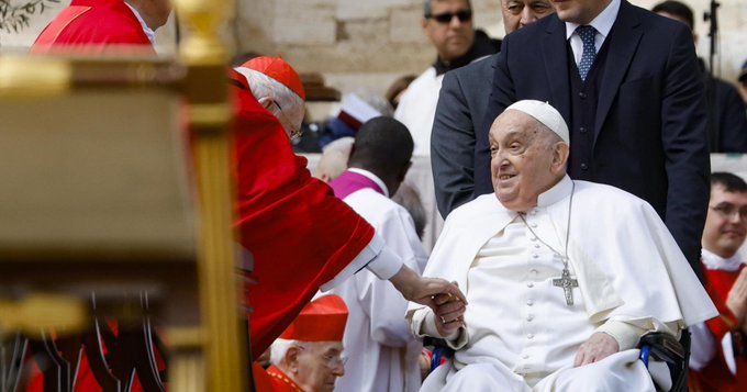 El papa, que cada día parece más recuperado de sus problemas de salud, acudió inesperadamente este Domingo de Ramos a la Plaza de San Pedro del Vaticano, donde, en silla de ruedas y sin necesidad de oxígeno, saludó a los fieles en el inicio de la Semana Santa.