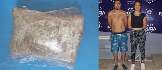 Jonathan Mauricio Romero Ruiz y Lisbeth Yamileth Rodríguez Leíva fueron detenidos en el cantón Santa Cruz, Ahuachapán, cuando vendrían un paquete de marihuana.