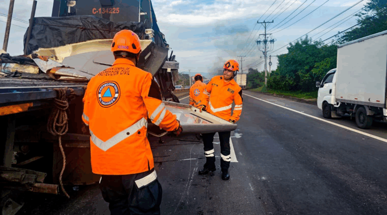 De acuerdo con los reportes, a pesar del aparatoso choque, no se reportaron personas lesionadas de gravedad. Al lugar también acudieron gestores de tráfico y elementos de la PNC para colaborar en la coordinación del tráfico vehícular que se vio afectado.