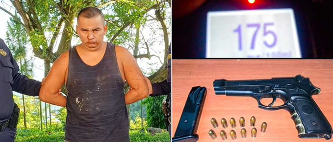 Agentes de la PNC arrestaron a un sujeto que conducía en estado de ebriedad y portaba un arma de fuego, se trata de Rodolfo Amilcar Molina Hernández, de 36 años, quien se accidentó en el kilómetro 52 de la carretera Panorámica.