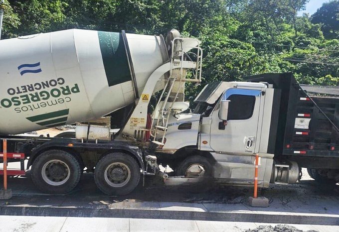 Un accidente de tránsito se registró sobre la carretera Panamericana, especificamente sobre el tramo Los Chorros, en el lugar, una volqueta impacto con la parte trasera de un camión mezclado de concreto.