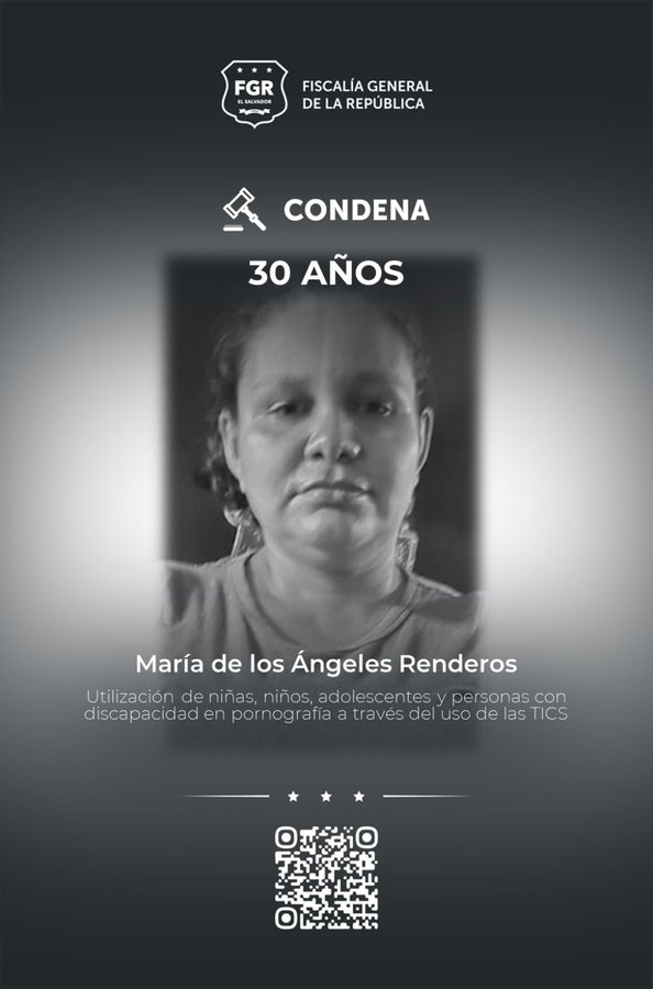 Se trata de María de los Ángeles Renderos, quien fue sentenciada por los delitos de utilización de niñas, niños, adolescentes y personas con discapacidad en pornografía a través del uso de las TICS, indicó el informe fiscal.