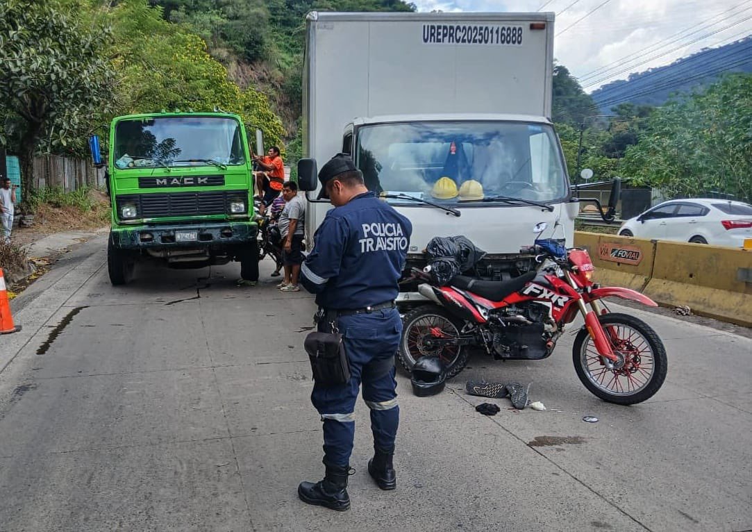 Un motociclista resultó lesionado este lunes luego de ser embestido por el conductor de un vehículo pesado sobre la carretera Panamericana, informó la Policía Nacional Civil (PNC).